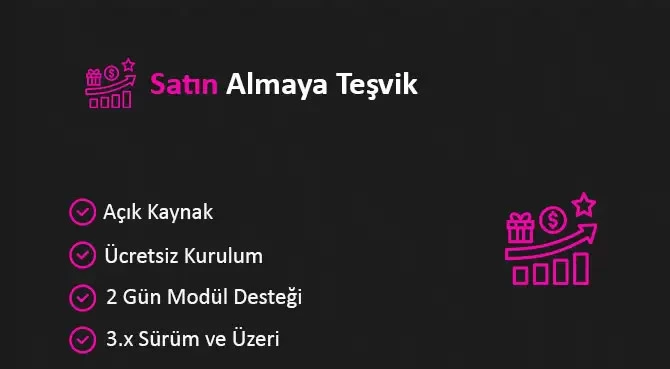 E-ticaret dünyasında başarılı bir işletme kurmak, ziyaretçilerin dikkatini çekmek ve onları alışverişe teşvik etmek için gerekli olan bir çok çalışma ile mümkündür. Bu çalışmalardan biri de satın almaya teşvik özelliğidir. Bu özellik, ziyaretçi deneyimini arttıran özellikler sunarak e-ticaret sitenizin ciro performansını yükseltmenize yardımcı olur.
